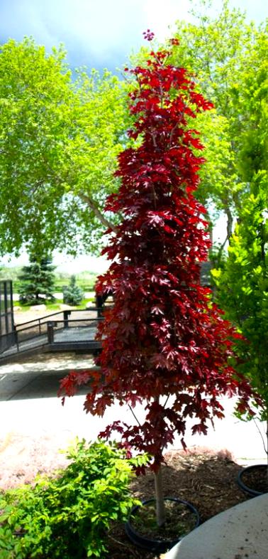 🍁 Klon kolumnowy ‘Crimson Sentry’ to doskonały wybór dla osób, które chcą połączyć elegancką formę z intensywnym kolorem liści nawet na niewielkiej przestrzeni.